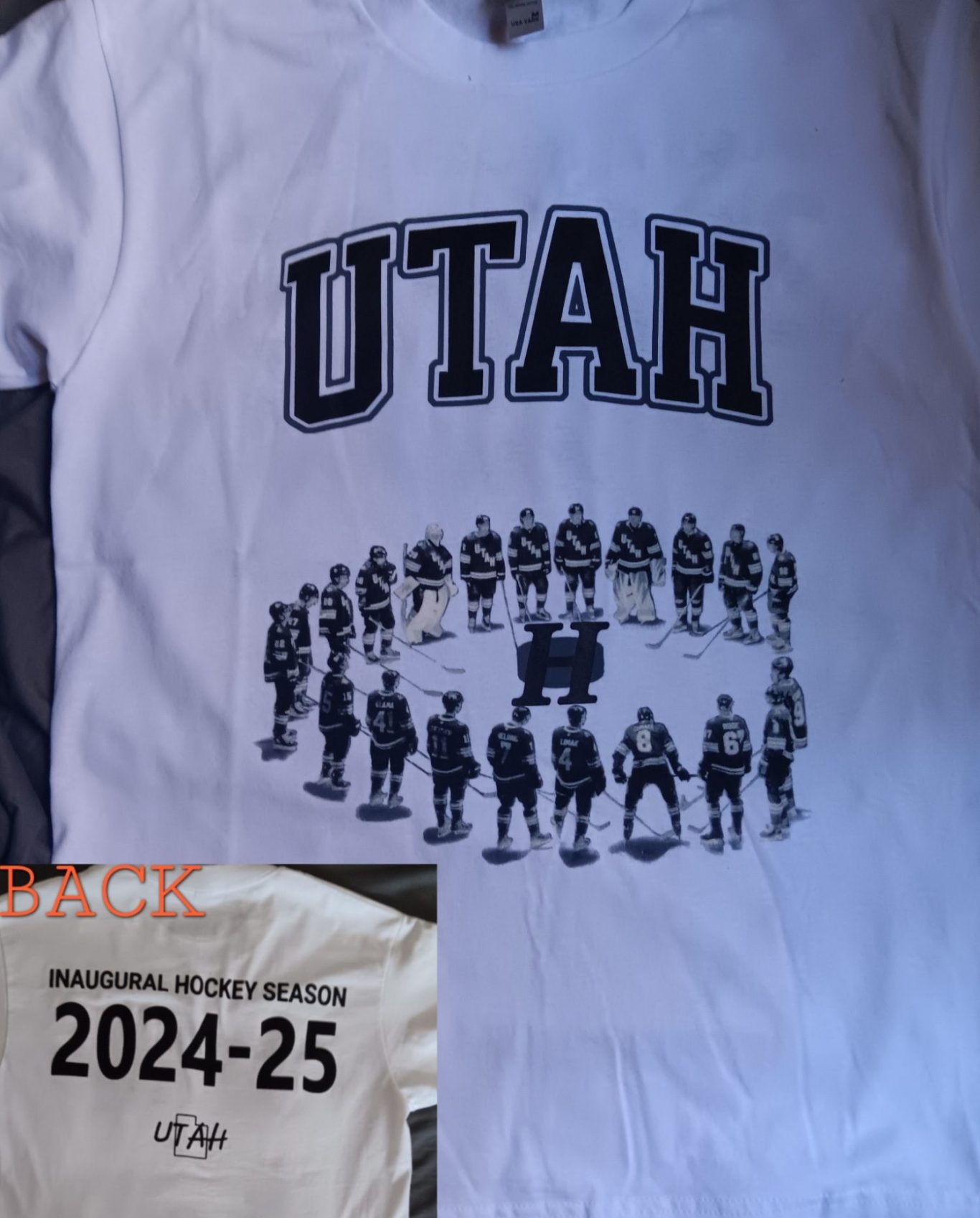 Stand out with our custom made UTAH Hockey Logo T-Shirts.